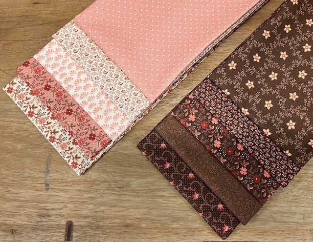Box composta da 10 tessuti americani della collezione Evelyn’s hope chest by Carry Quinn abbinati secondo il gusto Ape Pazza, per un totale di 2,50 mt.