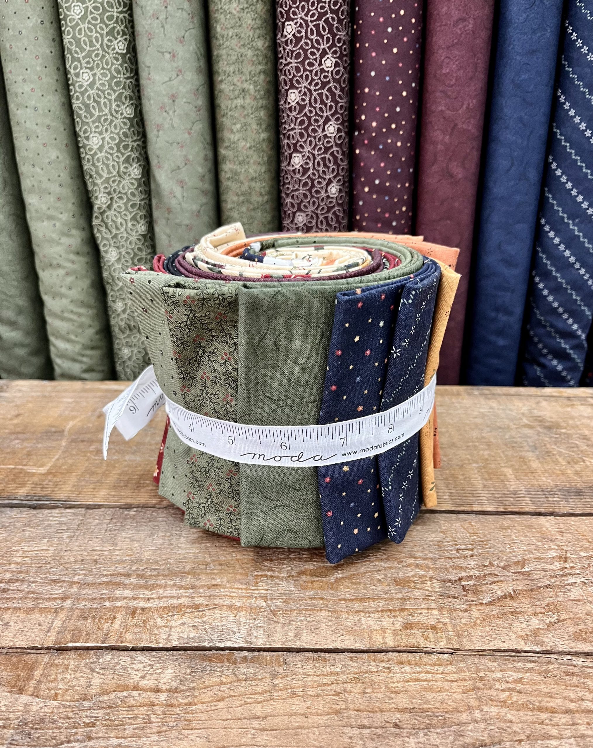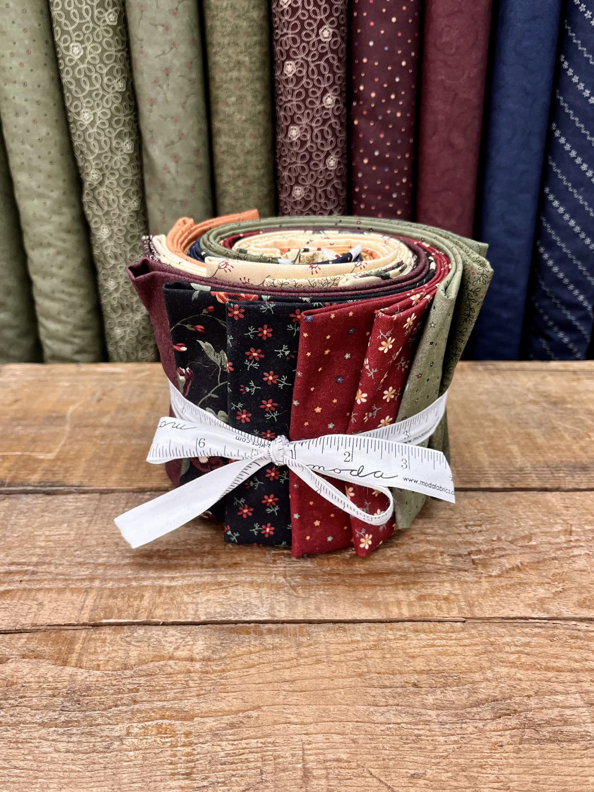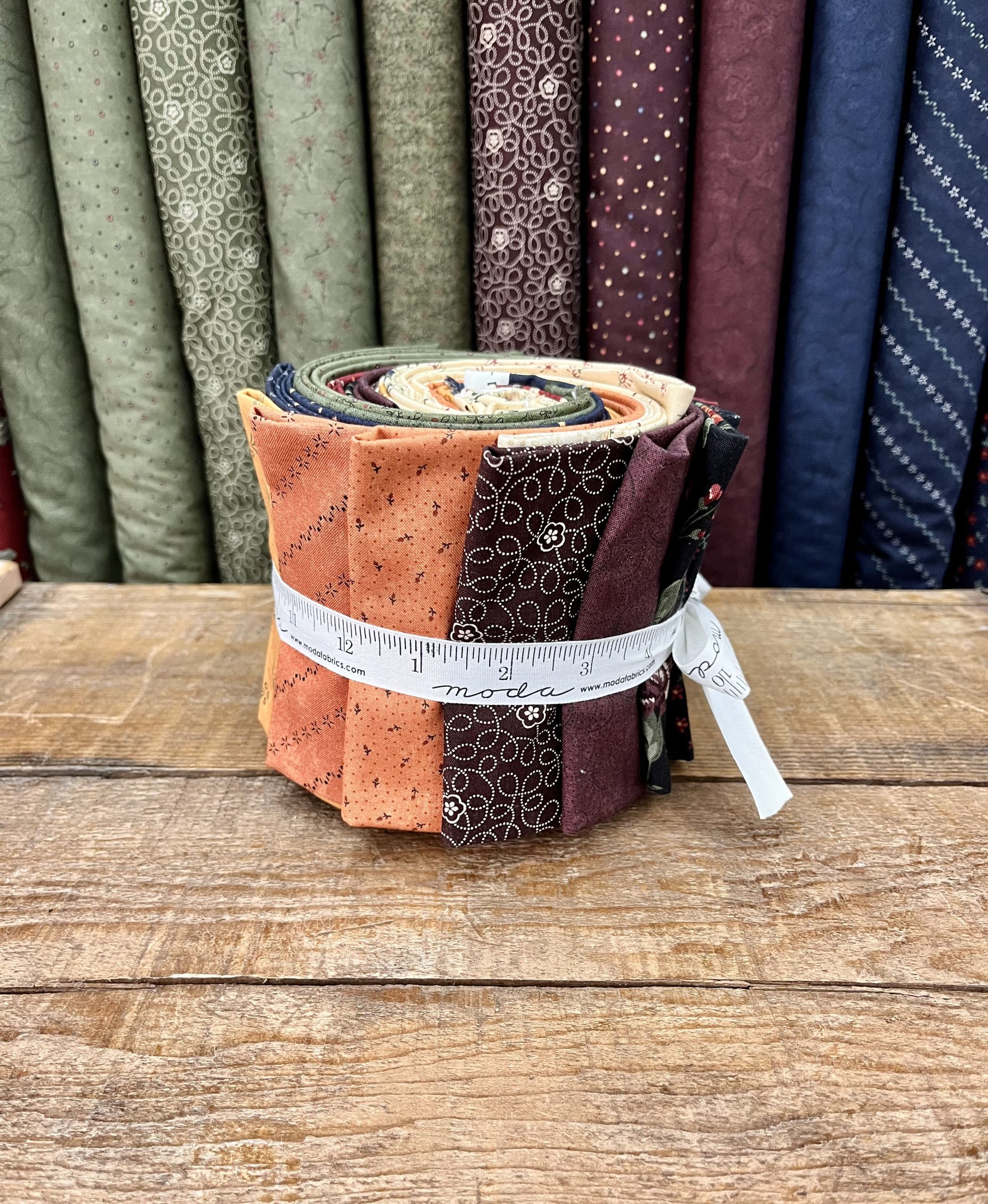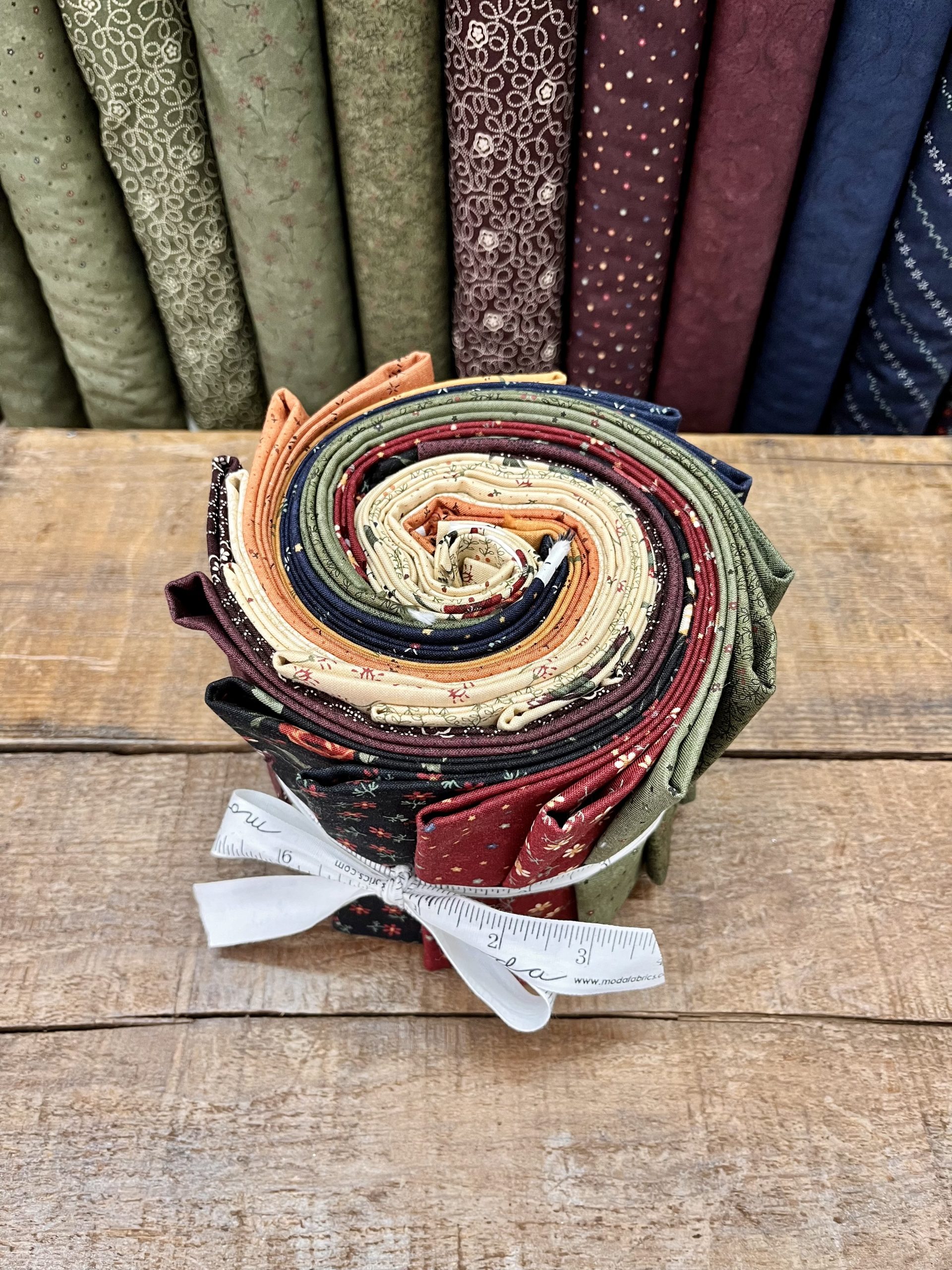 Roll 1 composta da 20 tessuti americani della collezione Daisy Lane by Kansas Troubles abbinati secondo il gusto Ape Pazza. Ogni tessuto misura 25 x 110 cm, per un totale di 5 metri.